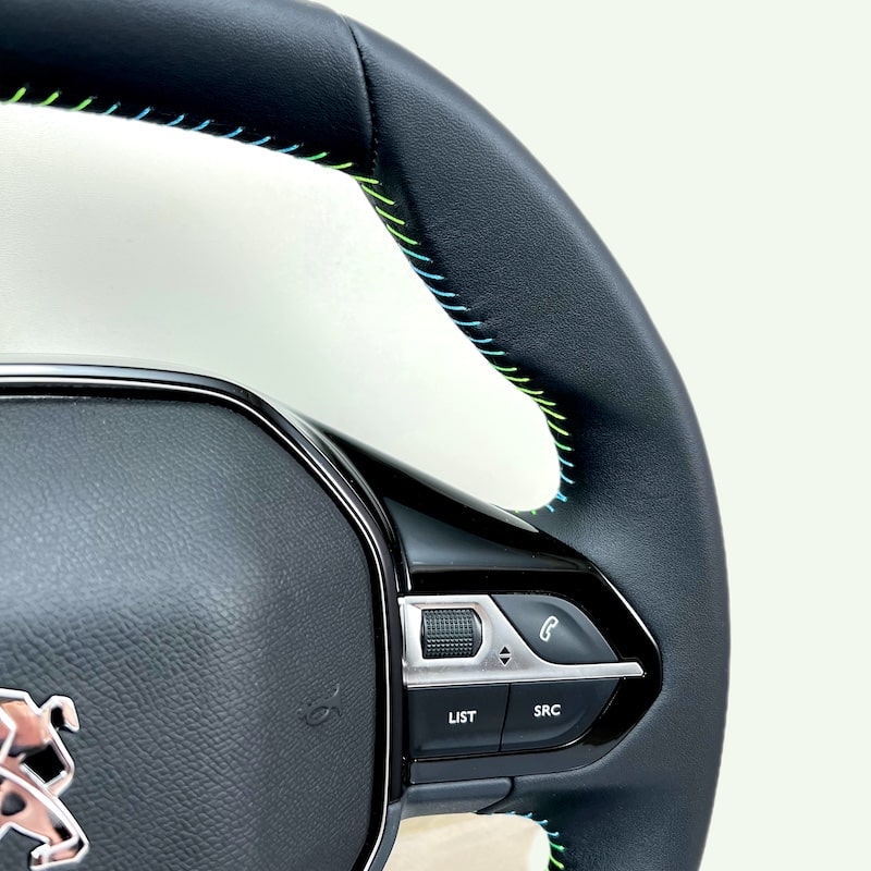 فرمان پژو ۳۰۰۸ دوخت سبز آبی مناسب ۲۰۷ و ۲۰۶ انتخابی بینظیر برای ارتقای ظاهری و عملکردی پژو ۲۰۶ و پژو ۲۰۷ است. با نصب آسان، کیفیت بالا و ظاهر اسپرت، این محصول در تیونینگ مانستر ماشین شما را به یک خودروی خاص تبدیل میکند. برای اطلاعات بیشتر یا سفارش، با ما تماس بگیرید!
