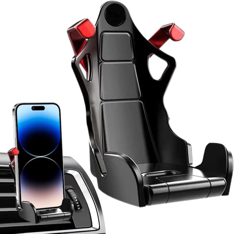هولدر موبایل طرح صندلی ریس یک اکسسوری خاص و اسپرت برای علاقهمندان به دنیای تیونینگ و خودروهای مسابقهای است. طراحی این پایه نگهدارنده دقیقاً از صندلیهای ریسینگ فیبرکربن الهام گرفته شده و جلوهای لوکس و خاص به داخل کابین خودرو شما میبخشد.