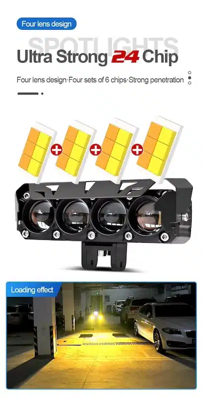 • کاربرد: نصب روی ماشین، موتور و کامیون برای رانندگی در شب، جاده‌های بارانی، کوهستانی و مسیرهای آفرودی