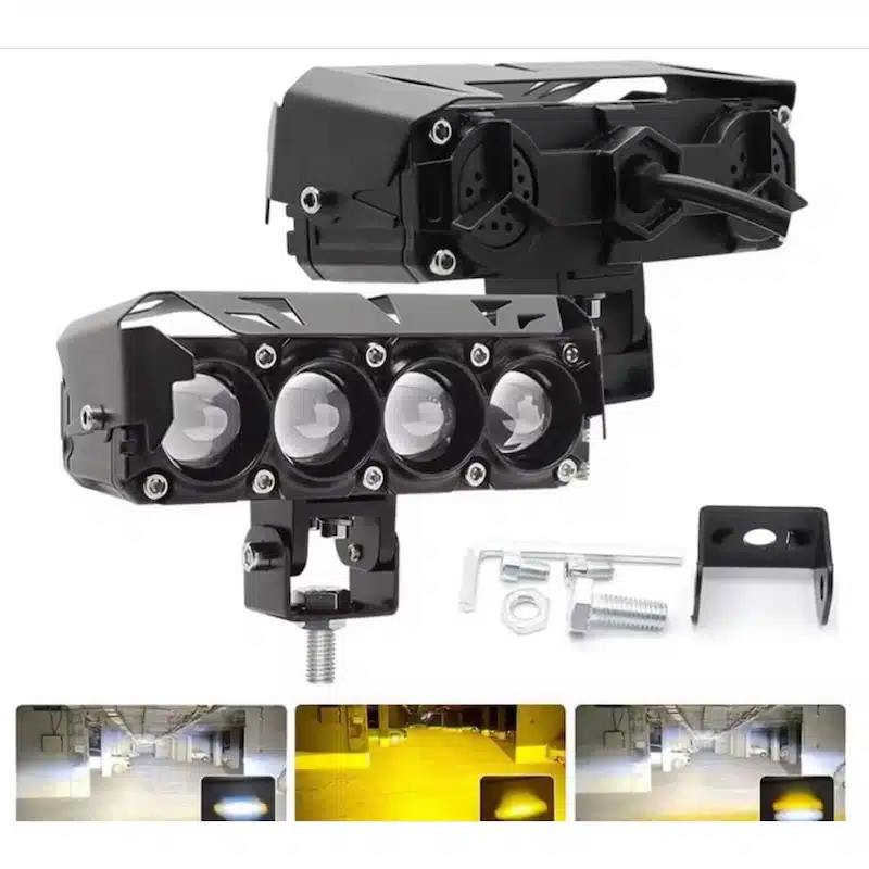 اگر به دنبال یک پرژکتور خودرو حرفه‌ای و مقاوم هستید، پرژکتور آفرودی ۴ لنز زرد سفید 38 W زیمر محافظ دار یکی از بهترین انتخاب‌هاست. این محصول با طراحی مدرن و کیفیت ساخت بالا، برای انواع خودروهای سواری، شاسی‌بلند، کامیون، وانت و حتی موتورهای سنگین قابل استفاده است.