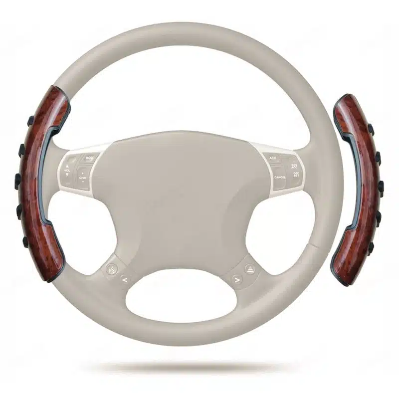 کاور فرمان خلبانی ۲ تیکه طرح چوب مدل تسلا نسل جدیدی از دور فرمان های خودرو هست که با کیفیت بالا و ماندگاری بسیار طولانی تر از دورفرمان های دوختی و حلقه ای جایی جدیدی در صنعت تزئینات خودرو باز کرده دورفرمان خلبانی در ۵ رنگ که برگرفته شده از رنگ داخلی و دکوراسیون اتاق های خودروهای داخلی و خارجی هست تولید و روانه بازار شده بدیهی هست که نسل جدید هم از امکانات جدید در خودروهای خود استفاده کند دورفرمان خلبانی این قابلیت رو برای رانندگان به وجود میآورد که دست گرفتن فرمان راحت تر از نسل های قبل دورفرمان ها باشد مواد ساخته شده دورفرمان خلبانی ABS و از یک روکش رنگی که نوع روکش پلاستیک هست ساخته شده.