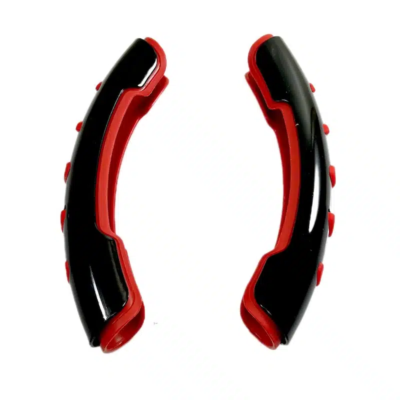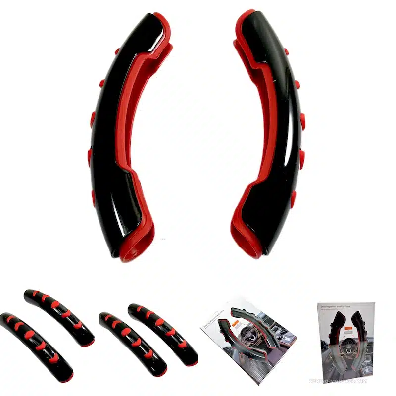کاور فرمان خلبانی ۲ تیکه مشکی قرمز مدل تسلا نسل جدیدی از دور فرمان های خودرو هست که با کیفیت بالا و ماندگاری بسیار طولانی تر از دورفرمان های دوختی و حلقه ای جایی جدیدی در صنعت تزئینات خودرو باز کرده دورفرمان خلبانی در ۵ رنگ که برگرفته شده از رنگ داخلی و دکوراسیون اتاق های خودروهای داخلی و خارجی هست تولید و روانه بازار شده بدیهی هست که نسل جدید هم از امکانات جدید در خودروهای خود استفاده کند دورفرمان خلبانی این قابلیت رو برای رانندگان به وجود میآورد که دست گرفتن فرمان راحت تر از نسل های قبل دورفرمان ها باشد مواد ساخته شده دورفرمان خلبانی ABS و از یک روکش رنگی که نوع روکش پلاستیک هست ساخته شده.